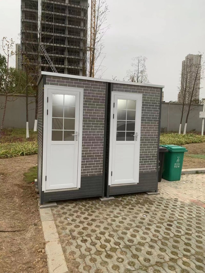 拼裝廁所;在廠里做好各個廁所部件,再到現場組裝在一齊,適合不易運輸的大型廁所。這座箱式廁所,女廁5個蹲位內配工具間,男廁2個蹲位+2小便斗,第三衛生間由殘疾馬桶、助力洗手盆和兒童馬桶、兒童洗手盆外加嬰兒臺等設施。廁所前后有窗,通風采光,前部走廊裝有屋檐,防雨防曬。此廁所位于公路綠道邊,整體大氣,功能齊全,造型美觀,是一道難得的靚麗景觀!